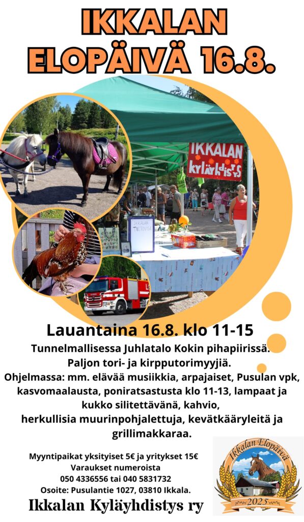 Seuraava kyläyhdistyksen tapahtuma on Ikkalan Elopäivä Juhlatalo Kokin