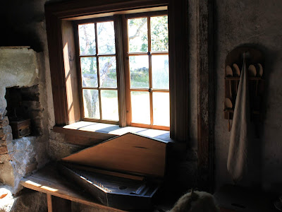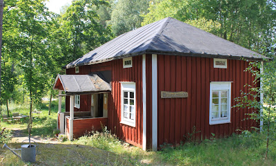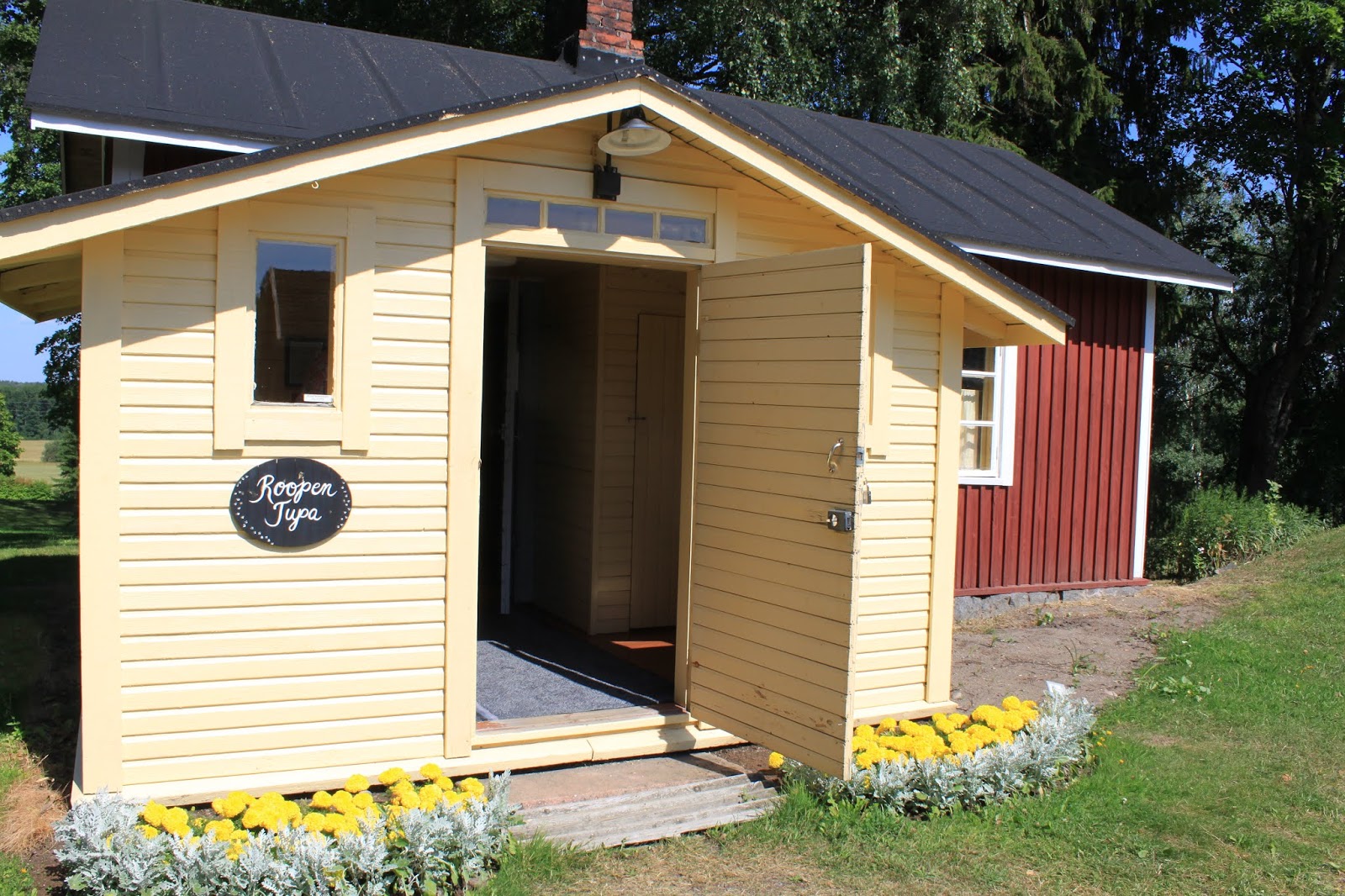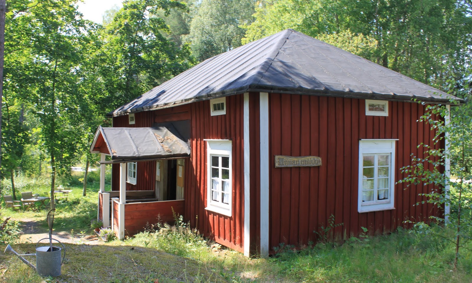ulkopäin se näyttää pieneltä. Puinen mökki on entisöity hyvin.