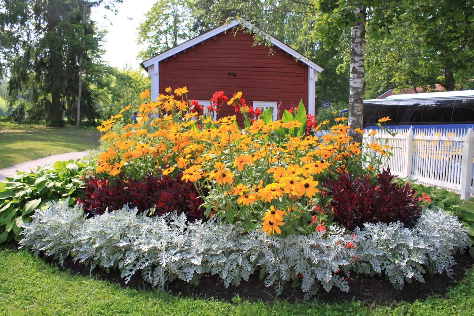 Museopihan upeiden vanhojen puiden varjossa saimme kahvit ja herkulliset leivonnaiset. Meillä