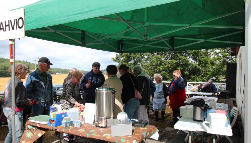 Esiintymisteltan edessä oli Pro Kotojärvi-kahvio, josta sai itseleivottuja suolaisia ja makeita leivonnaisia. Kahvio veti runsaati asiakkaita hyvän asian puolesta.