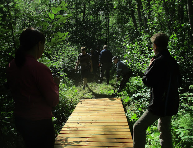 helpotettiin puisilla portailla, kosteikon yli rakennettiin
