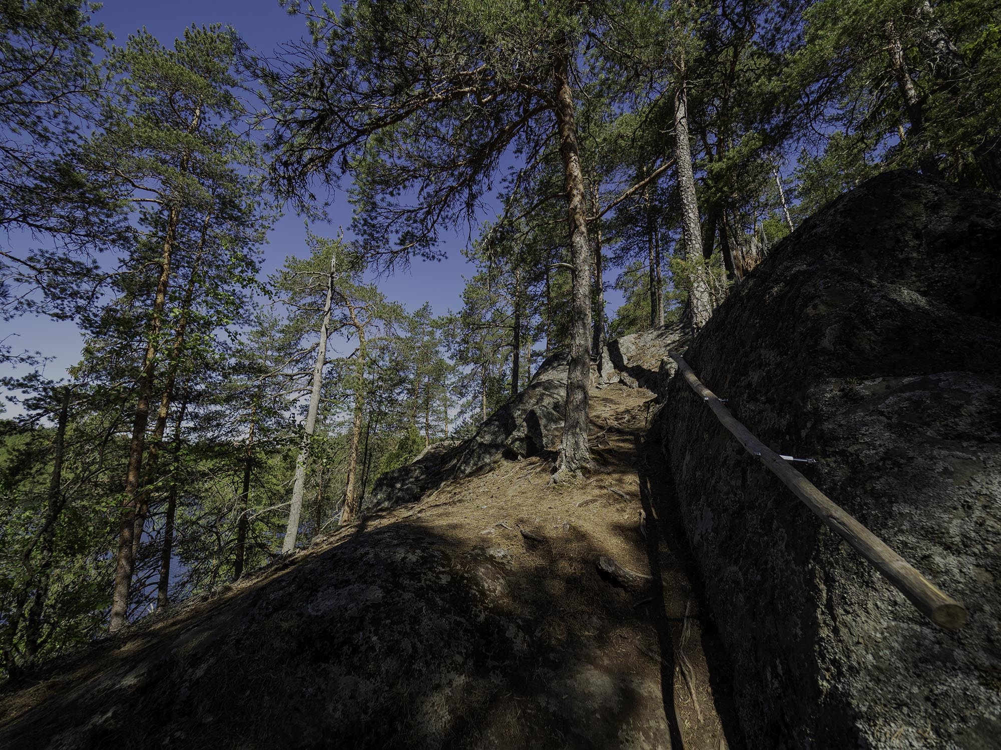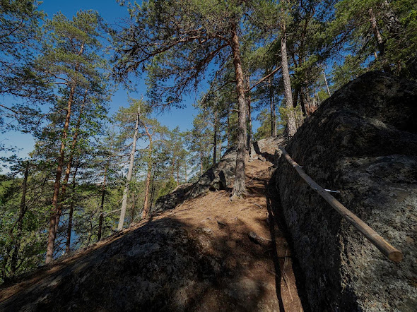 raivauksella. Uimarannalta ylös kalliolle johtavaa reittiä